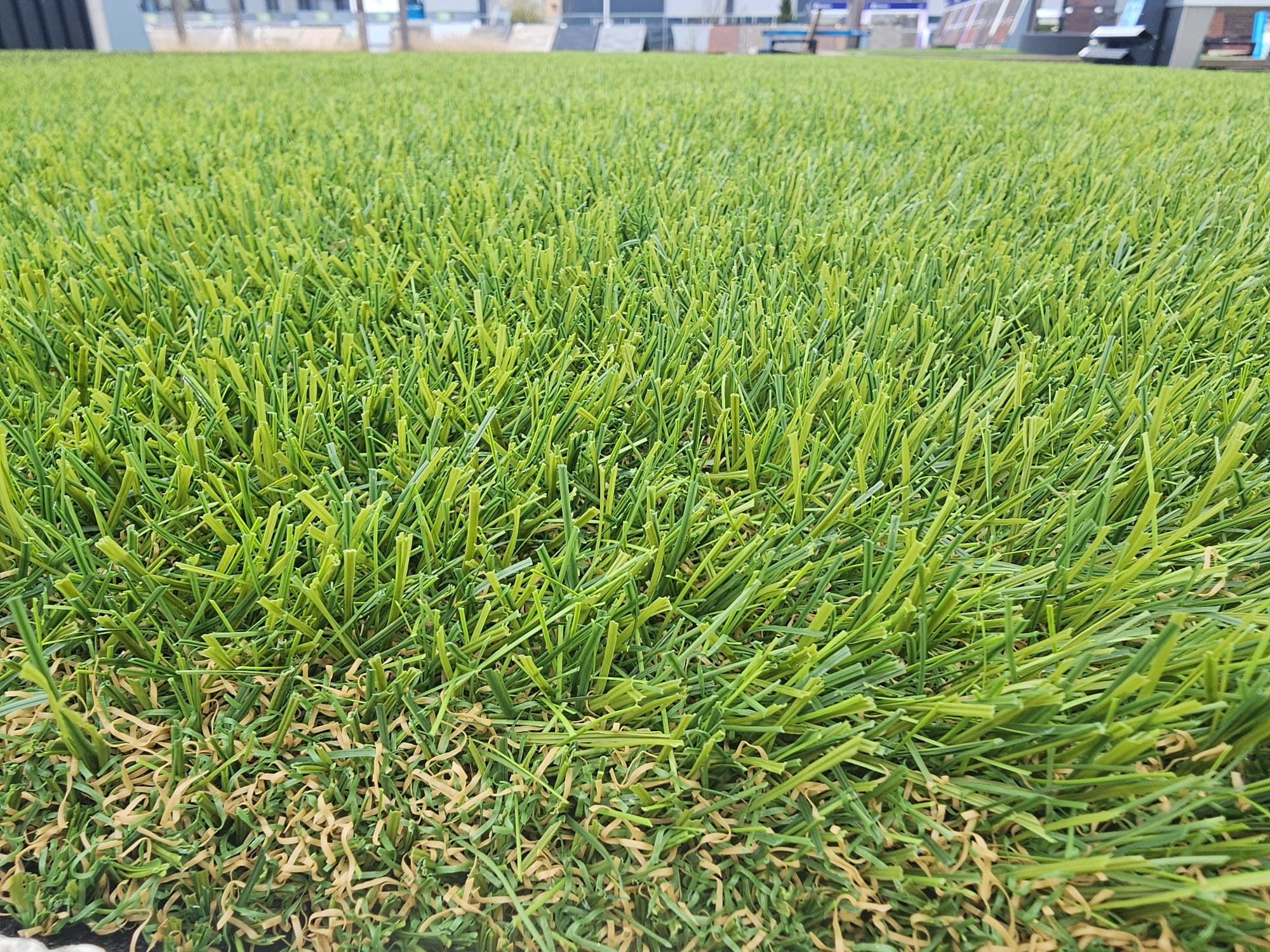 Ervaar de luxe van de Muiderslot 50 kunstgras van Tuin en ZO Nijverdal: een weelderig gazon van 50 mm hoog met een indrukwekkend totaalgewicht van 2725 g/m². Dit hoogwaardige product combineert een mix van PE- en PP-vezels met een dichtheid van 12.600 steken/m², wat resulteert in een uitzonderlijk realistische en volle uitstraling, perfect voor hoogwaardige tuinaanleg.