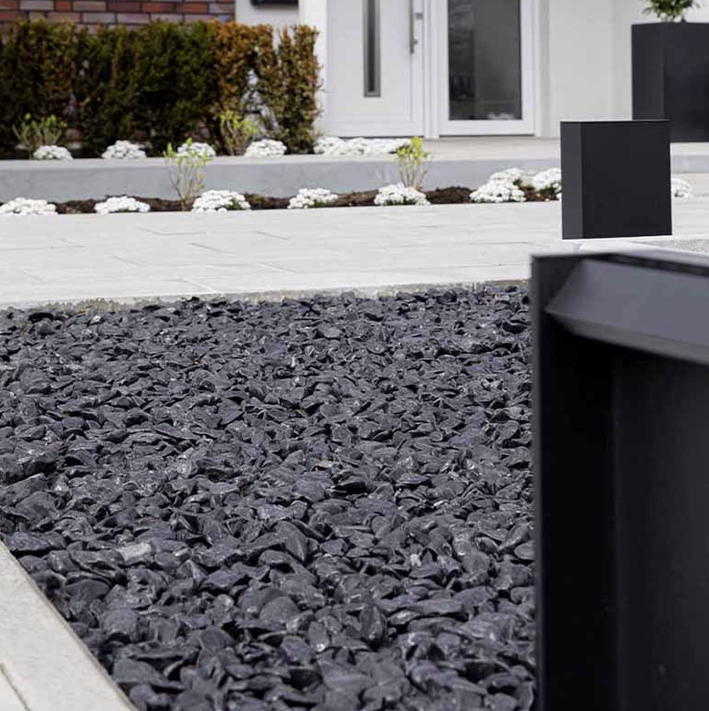 Nero ebano grind is een prachtige siergrind met een unieke donkergrijze kleur (grenzend aan zwart in natte toestand) en hierdoor steeds populairder. De combinatie van de donkere kleur en de mooie ronde vorm maken dat deze siergrind stijl en luxe uitstraalt, terwijl de Nero ebano bij Steinfach toch betaalbaar blijft!