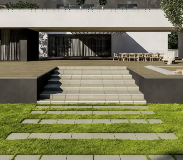 Een keramische buitentegel met een moderne betonlook.